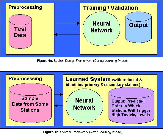 In our project, we will use ANN?s to analyze a set of data taken from a specific test area to achieve a generalization. Neural networks in general have the capability of learning patterns and making conclusions about a certain situation through training and learning. In this case, in reducing the number of monitoring stations, we will train the neural network to recognize patterns in the occurrence of the high toxicity levels in different stations at different times. First we determine the variables that we need to be able to train the network. Upon careful study, we found that we only need a subset of the existing time-series data taken from the area under consideration in order for the network to make a reasonable conclusion about our problem. Table 1 gives the variables (along with their descriptions) that we found to be sufficient in order for the network to learn.